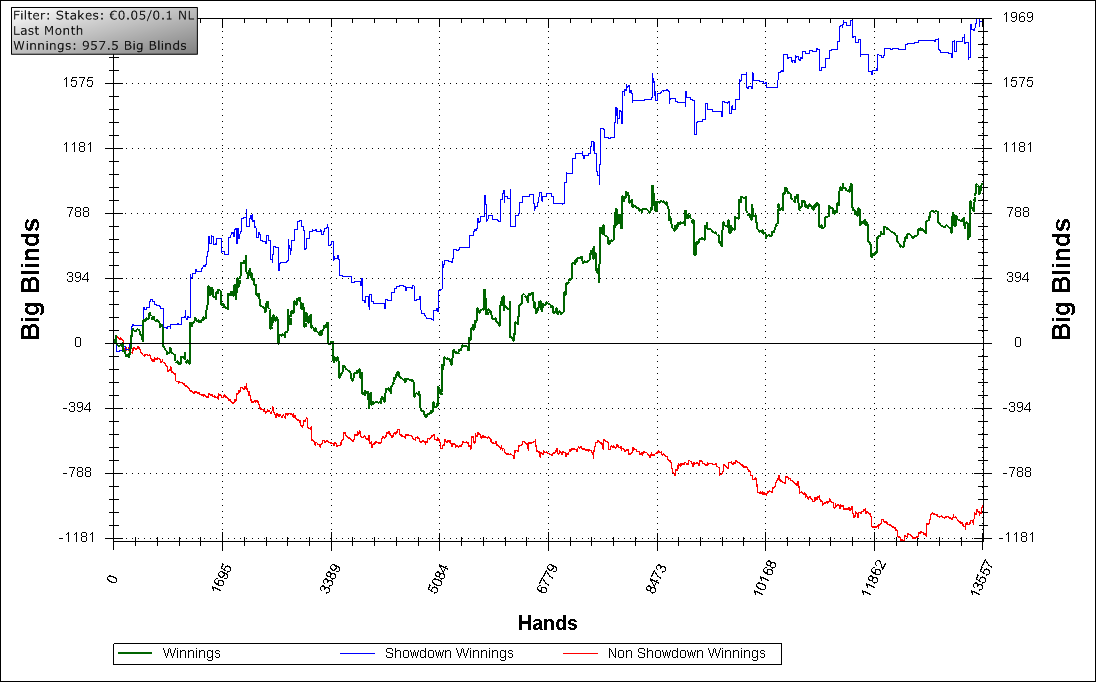 2) nainstaloval som si stoploss script a zda sa mi, ze mi to pomaha (uz nemusim pozerat cashier ako som na tom, script mi povie, ze prehravam X buyins od max.peaku pocas session, t.j. kym vyhravam, necha ma hrat, ked zrazu nastane nejaky drop ma upozorni a ja ho posluchnem a davam break.