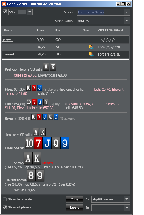 Ked sa zatvarali NL20 stoly, pozrel som na NL50 a tam skoro ziadny reg. tak som si prisadol na 2-3 stoly a hral value. Priznam sa, triafalo ma, setoval som o 106. Takze kvazishot NL50 po 2 mesiacoch absencie mam za sebou:
