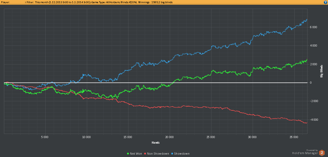 medzi rukami 15000 az 27000 som mal vodorovnu redline. Bud som tam hral inak a mal by som sa na to pozriet alebo to je variance a mala vzorka a mal by som sa na to vykaslat, hmm?