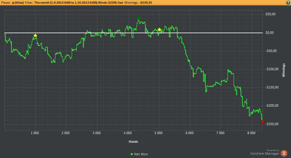 SB: $14.83 - VPIP: 36, PFR: 18, 3B: 0, AF: 3,5, Hands: 33