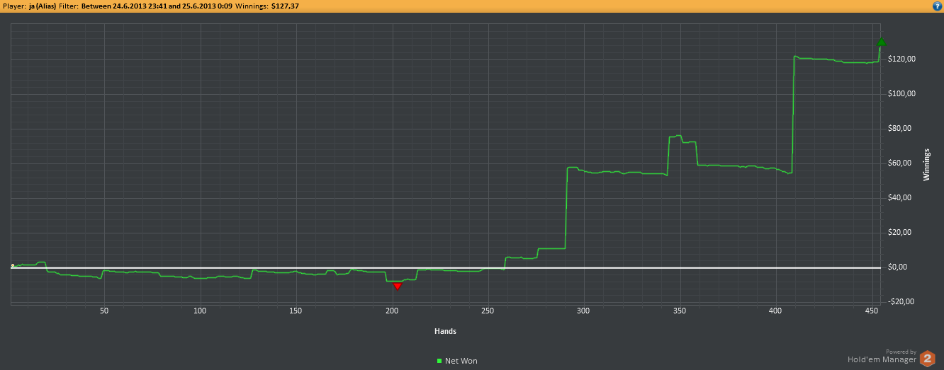 SB: $15.74 - VPIP: 35, PFR: 24, 3B: 20, AF: 7,0, Hands: 17