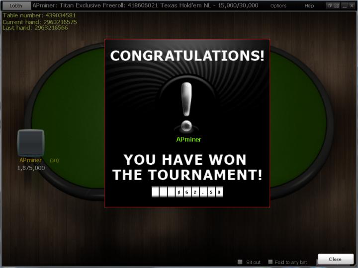 Aspon ze na freerolloch sa ti dari :D