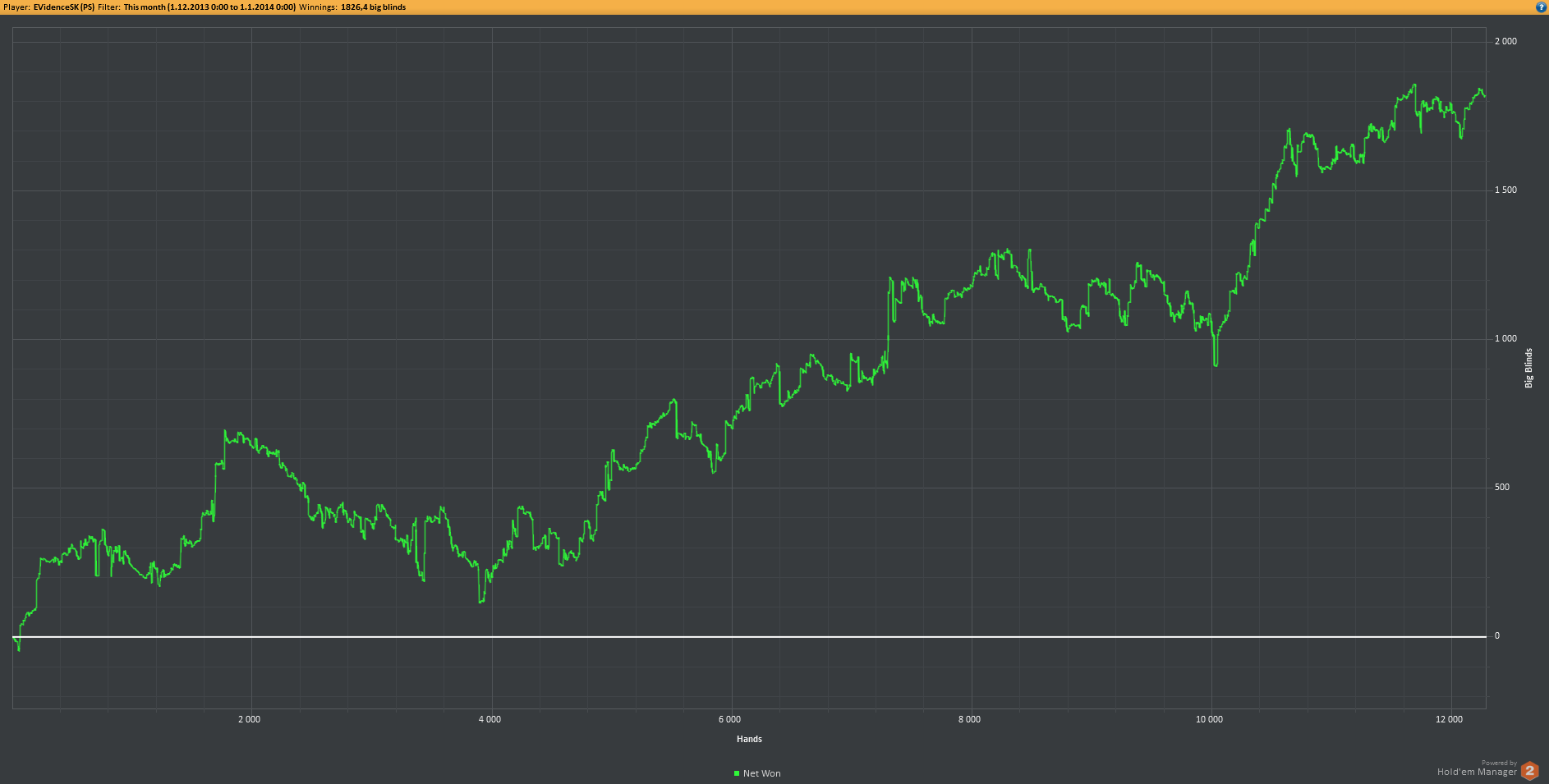 Cely mesiac november sa niesol v znameni rebuildu na NL25, z coho som nebol velmi nadseny, lebo som si myslel, ze podla mojich schopnosti mam na viac, ako sa len tackat medzi NL25 a NL50 ako nejaka bitch. ZOOMoval som 2/3 mesiaca, poslednu 1/3 mesiaca som hral normal stoly. Nikdy viac uz nechcem ZOOM stoly ani vidiet.