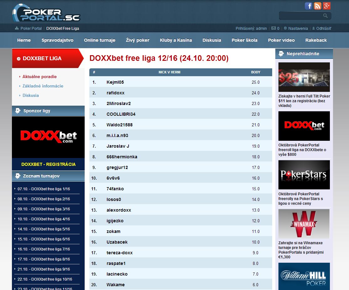 Celý článok => Októbrová PokerPortal freeroll liga na DOXXbete o vyše $800