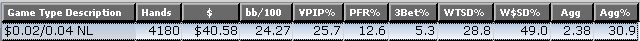pocet ruk je sice este maly, ale 24.27 BB/100 je vysoko nadpriemerne, len sa potom nezlakni, ked to casom trosku zacne klesat .. ja som druhy mesiac po zoznameni s pokrom este tie karty iba zul