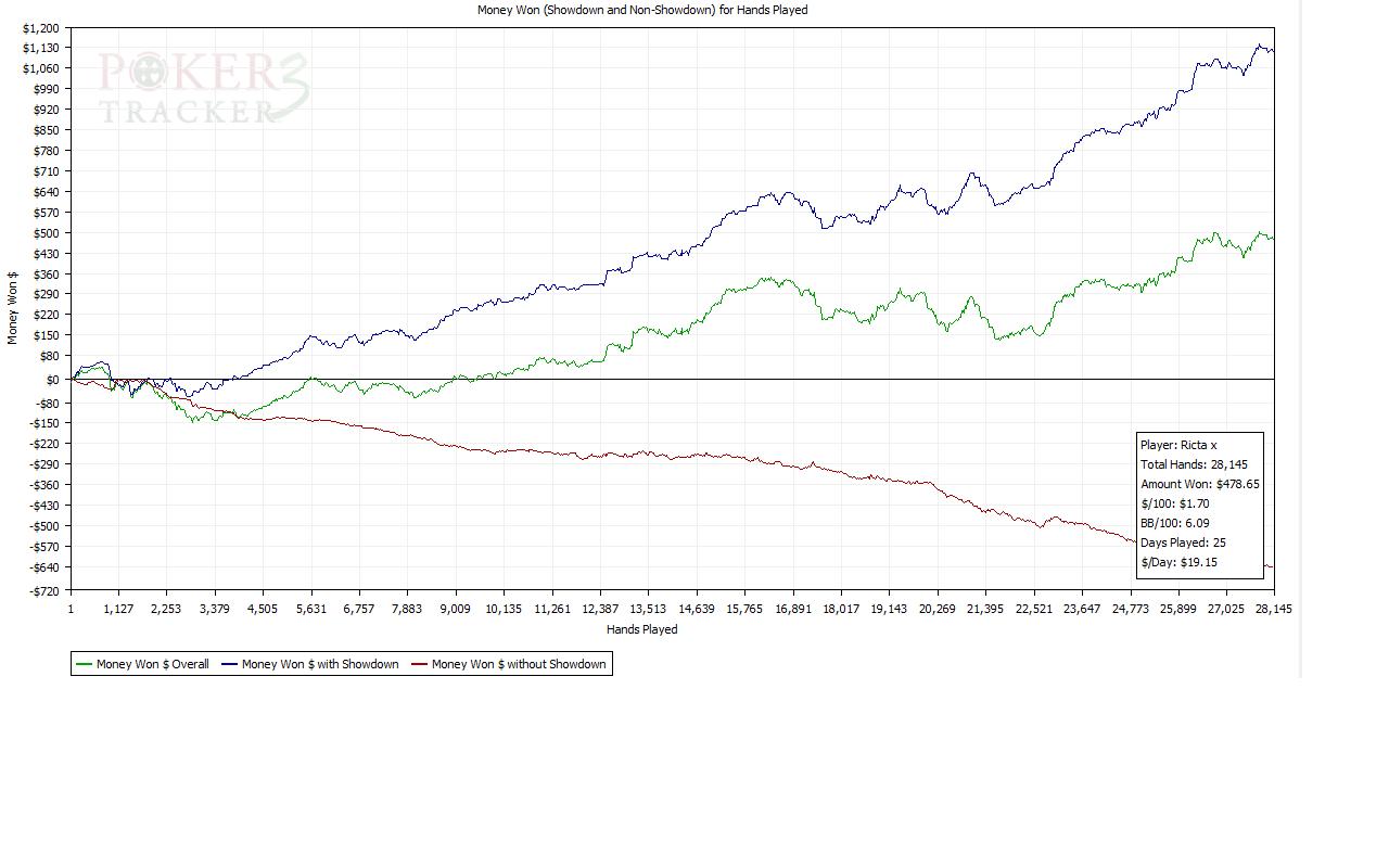 Zacal som po mohutnom downswingu na konci 2008 znova na nl50 nadobudat nejake sebavedomie a dolariky , asi po 4 dnoch som opat presiel na nl100 a v pohode sa udrzal , moc som ani nehral kedze som vela dni pocas skuskoveho vynechal . Graf je len do 23. pretoze na toweri zrusili 8pp/$ bonusy a nahradili to nejakym smiesnym valuebackom co vychadzal asi ako 10%RB . Tak som zacal stahovat peniaze na iny ongame skin kde sa mi podarilo zohnat deal s 8pp/$ bonusmi a nejakym RB navyse od affilate .