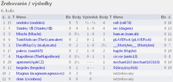 Tabuľka po 6. kole: