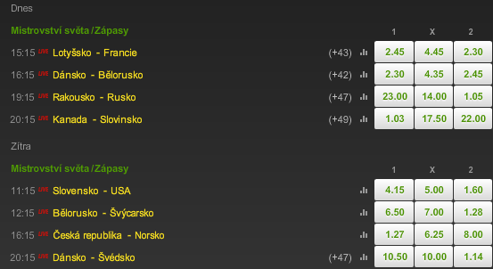 Najbližší zápas sa hrá v utorok o 11:15 Slovensko - USA (4.15/5.00/1.60)