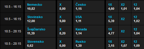 Najbližší zápas slovenskej reprezentácie nás čaká zajtra 10.5. o 20:15 Slovensko - Rusko (6.62/6.0/1.3)