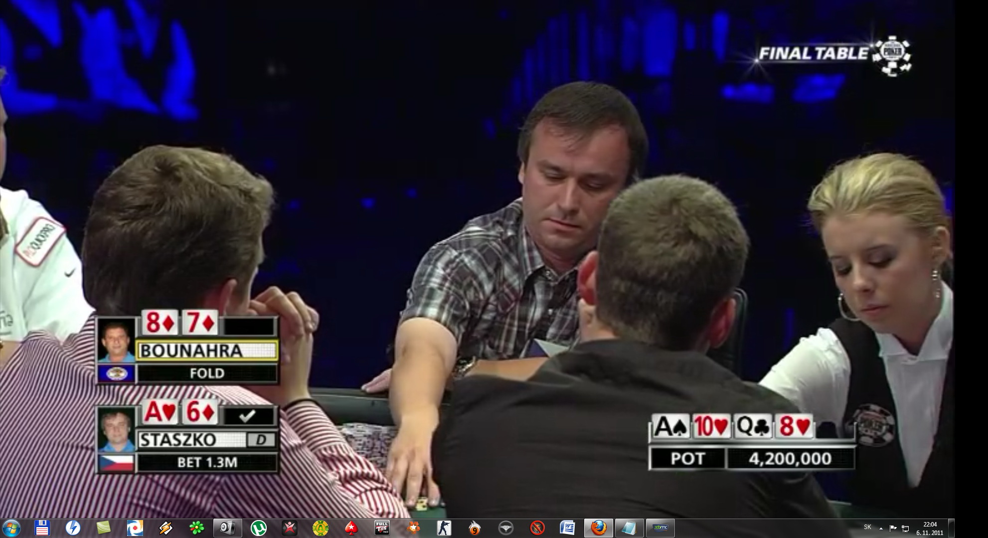jaj a neviete kde sa to da kuknut este na nete ? lebo na http://www.wsop.com/2011/live-video/ mi nejde audio :DDD nwm preco