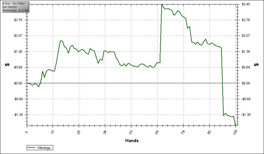 do 86. handy vse OK - jen jednou mi zahodili na BTN raise, pak zacal blbnout net, nastesti asi jen 2-3 minutky, tak jsem to dohral