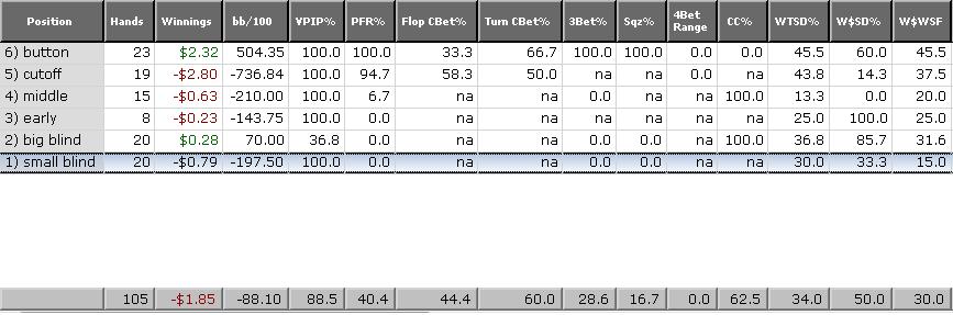 tak jsem si to taky pinknul na F****Tilt .... je to prdel, ostatni zjistili, ze hraju VPIP 100, tak se pripojili - "daria60" VPIP cca 95, "strateg22" cca 80 a "ThechronicLS" asi 60 a navic byl na BTN, kdyz ja na CO, takze mne vzdy 3-4betnul ... :)