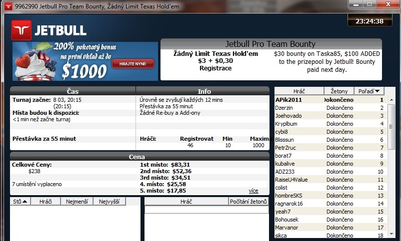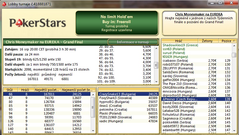 Zdar, neviem či hráš turnaje za FPP´s 10FPP,20FPP.... podľa tvojho statusu na PS. je to veľmi easy a 75% budeš ITM určite :) teda aspoň na tých small to je mrte easy, hrajú sa o 20:00,0:00 a 1:40 tie small, akurát zapínam :P