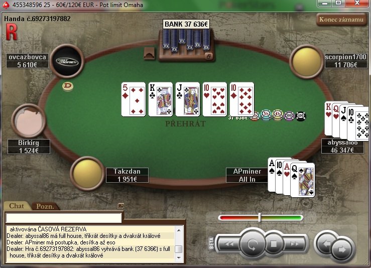 turn: on bet, ja pot, on pot, ja AI, on call ....... 3outak neomylne :bad: :bad: :bad: