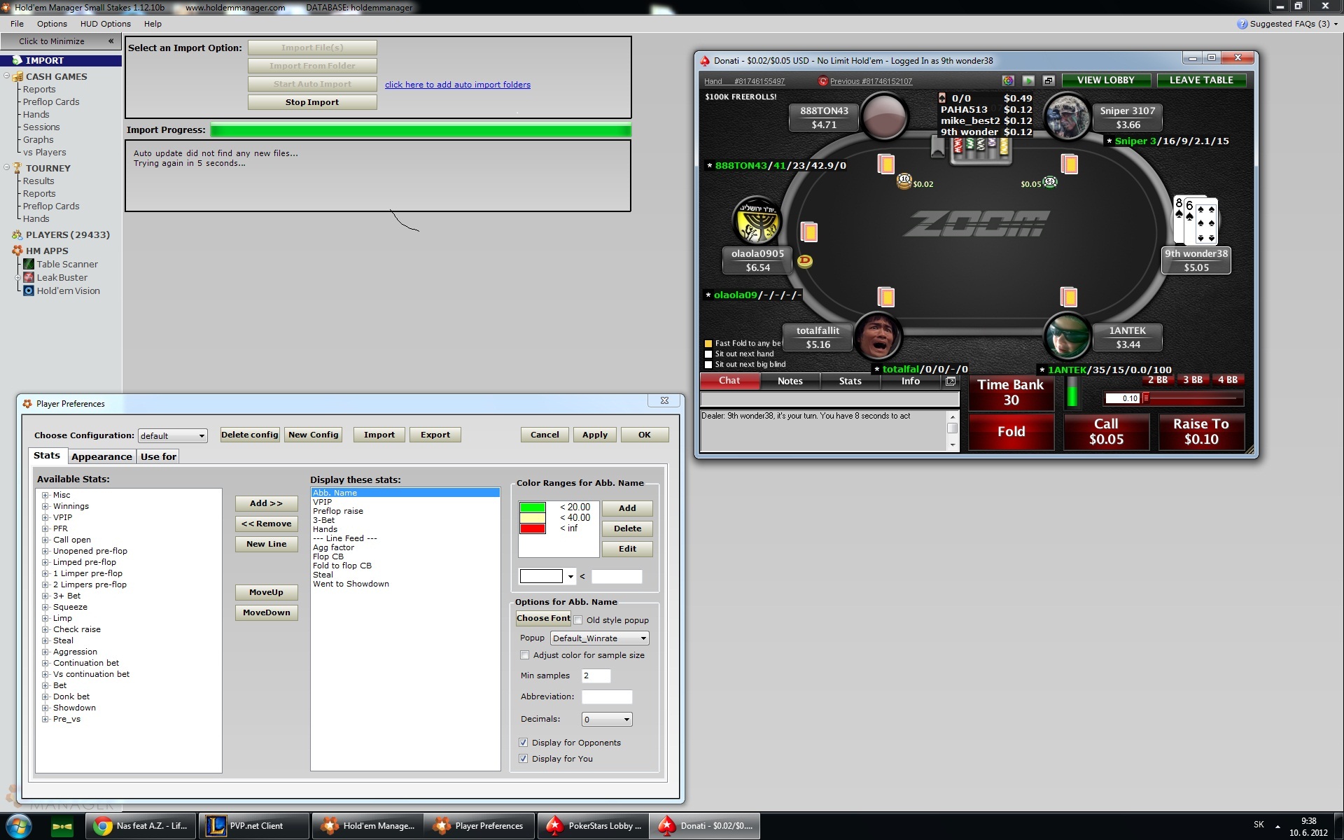 Zdravím,už nejakú dobu sa snažím rozfachať HUD na zoome,no vždy neúspešne. HUD nezaostáva,len mi to ukazuje veľmi zaujímavo as you can see in the picture(VPIP/PFR/3bet/steal)..dlho som sa nehral s HUDom,tak je možné,že som na nejakú základnú vec zabudol,ale neviem si s tým vôbec rady.