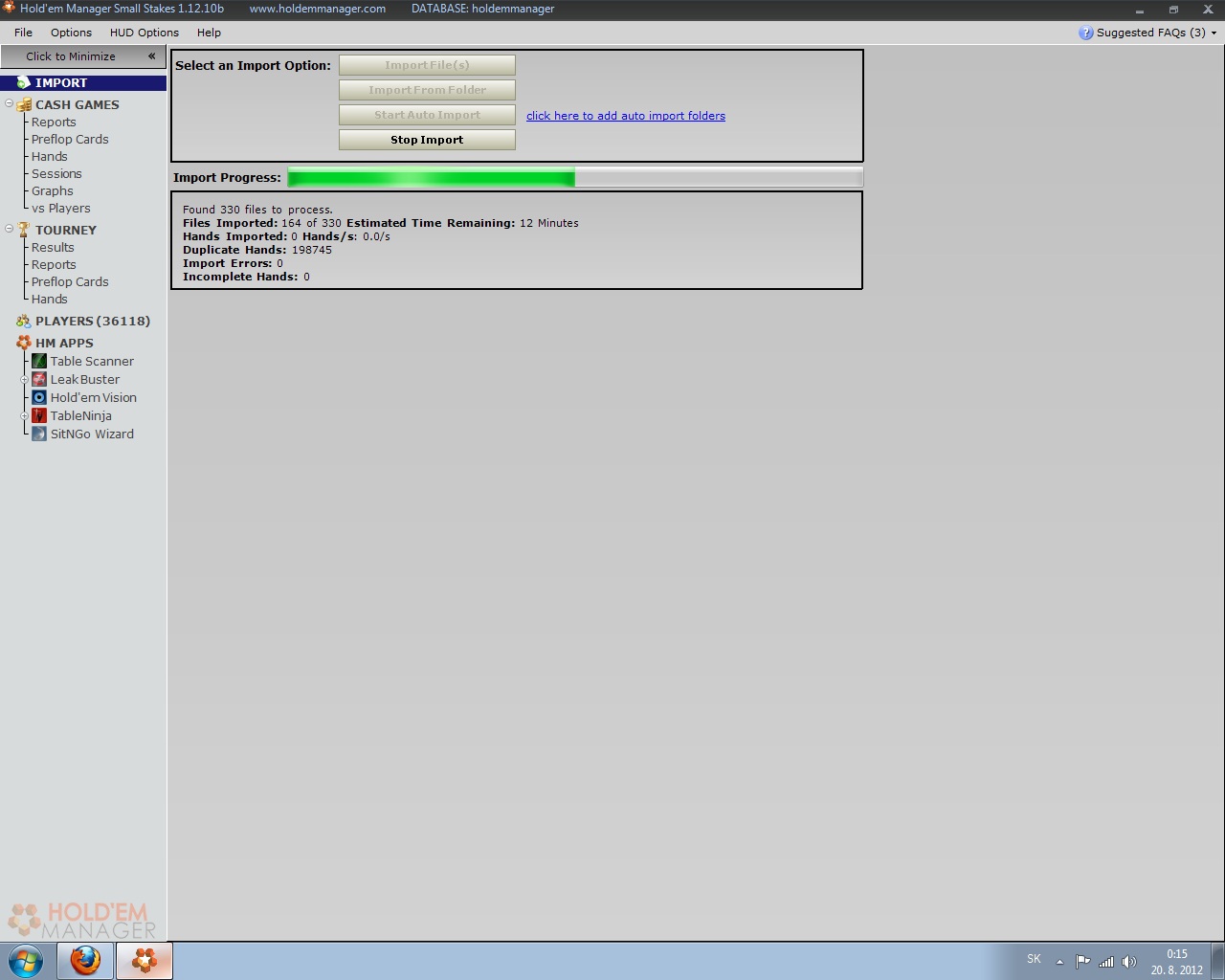 caute,reinstaloval som win a predtym som si zálohoval db a poznámky. teraz sa ich snažím dať dokopy. db som už restorol podľa FAQ, ale vždy,keď dám start auto import mi zacne prechadzat celú hand history dookola (uz su to asi 4hodiny). Neviem si s tým rady. V table manageri nemám ani stoly a skúsal som to aj cez "red square" a stále nič. Btw kam mám vložiť zálohované notes,aby som si ich obnovil?