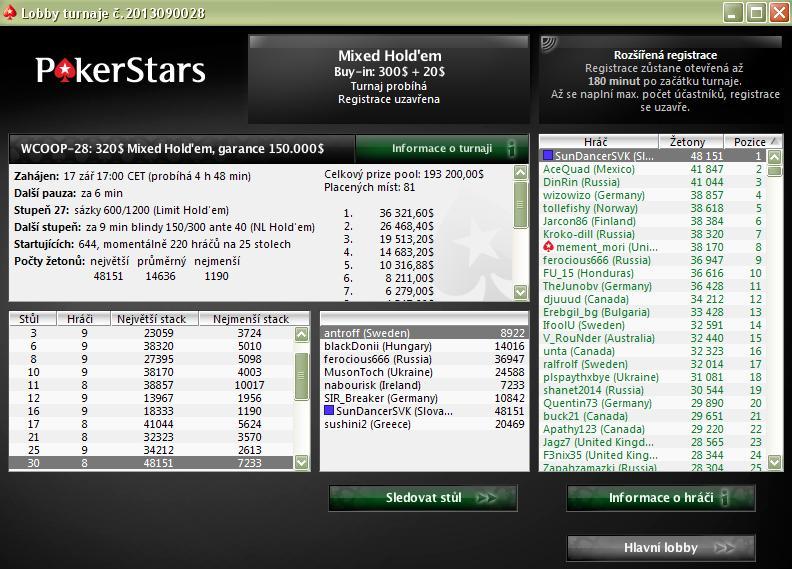 Trochu nenápadne sa stal najúspešnejším slovenským hráčom prebiehajúcej série WCOOP neznámy hráč "SunDancerSVK". Počas včerajšej noci skončil štvrtý Evente WCOOP-26: $320 Stud a získal tak výhru $8,775. Pre tohoto hráča to bol už druhý finálový stôl počas WCOOP, čo ho katapultovalo do TOP 10 Leaderbordu! Darilo sa aj ostaným slovenským hráčom.