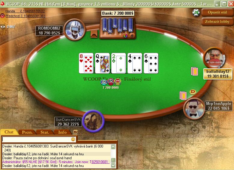 SunDancerSVK stále v hre so skvelým stackom 22M - V hre ostáva TOP 5 blindy 200K/400K avg. 19M :gl: