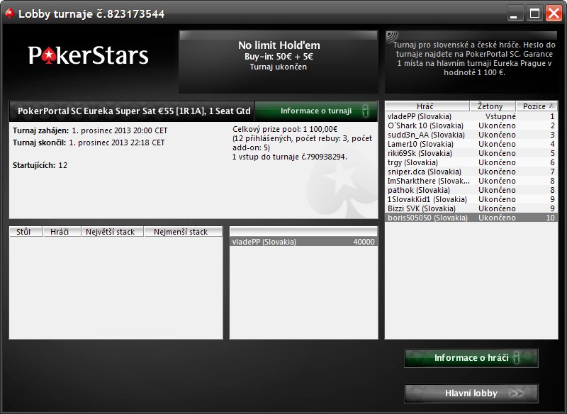 Re: Zahrajte si privátne PokerPortal satelity na Eureka Prague