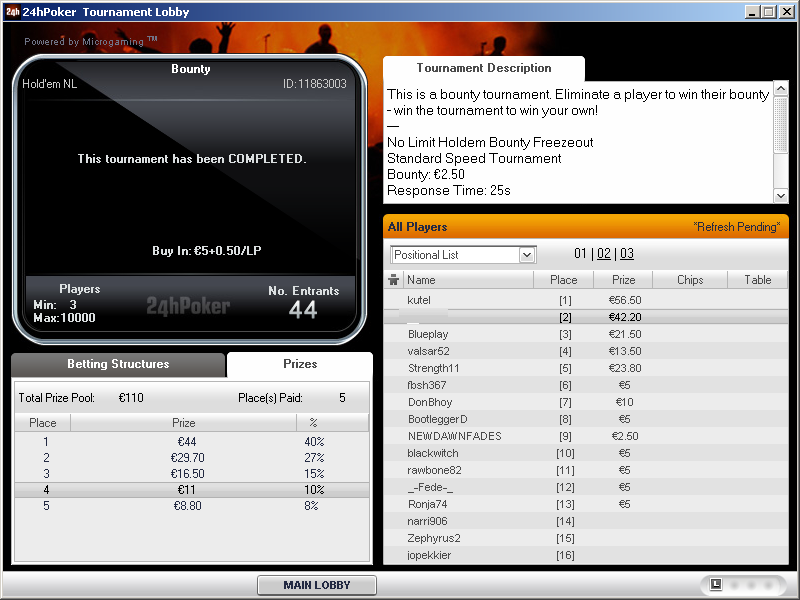 dal som 1 tournament za loyalty points, ktore sa nedaju premenit na peniaze (naskocil som late reg v leveli 50/100 s 20BB):