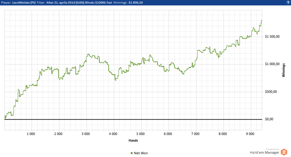 suma sumarum: nakoniec celkom v pohode profit :) a hlavne v poslednych dnoch som so svojou hrou nadmieru spokojny. uplne som zmenil hru zo SB a snazim sa hrat co najviac 3bet poty, kde myslim, ze najviac leakuju money hraci tomto limite, kedy su casto calling stationy.