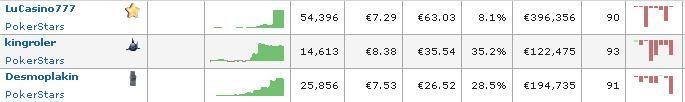 Ak by sme nebrali do úvahy všetky veci okolo hrania MTT (materál na študovanie, nehrateľné turnaje, variance a pod.), myslím si, že väčšina hráčov, ktoŕý hrajú len MTT turnaje je v priepastnom mínuse a nedokáže dlhodobo udržiavať profit. Hlavne v herni P****Stars je podľa mňa takmer nemožné bez silného bankrollu MTT hrať. Je preto pochopiteľné, že len malá hrstka hráčov z Česka a možno traja Slováci sú z MTT dlhodobo v profite (nerátam profity v 100-kách dolárov). Aj to väčšinou vďaka nejakej väčšej výhre z trafeného garantu. Vo výsledku sa neustále opakujú tie isté nicky, ktoré počas noci odohrajú xy turnajov v 7-8 herniach a dokážu si tak udržať aký taký profit. Nicky ako Desmoplakin, Vinkyy, suk12, Dolysz, czlol a pod si udržujú dlhodobý štandard a sú v profite. Väčšina však je v krátkodobom horizonte značne v mínuse. Ale tak môžem sa mýliť. ;)