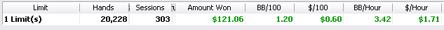 Tak dneska už končím, tak to postnu taky... :) Po parádnim začátku, kdy jsem odtiltoval asi 130 dolarů se mi podařilo uchytit se na NL20 a níž už nikdy nepujdu... :) Já jsem tento měsíc spokojený... Od toho grafu je třeba odečíst 90 dolarů, jež jsem promr....hal na Hollywood Pokeru... Taky už mi chybí jen cca 800 bodů na vyclearování 500 dol. bonusu na bwinu.