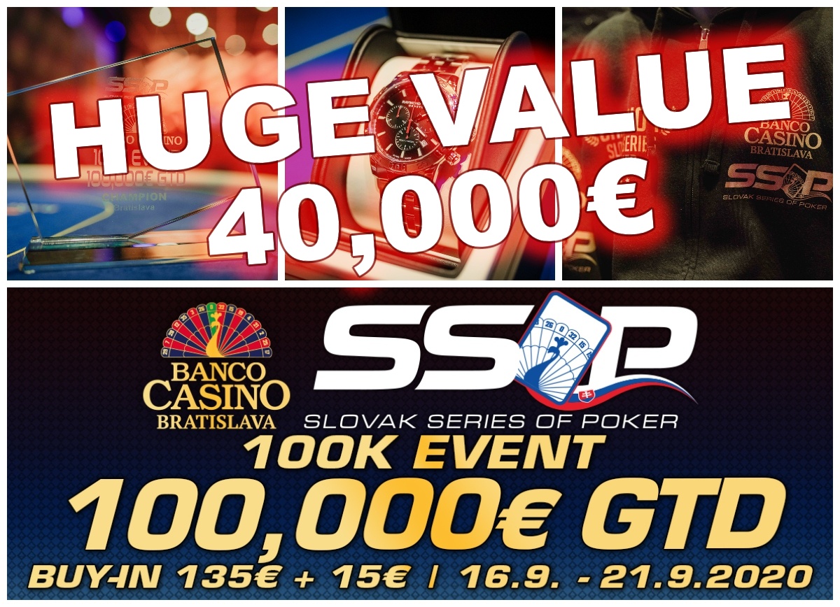 Po troch úvodných dňoch prvého garantovaného turnaja Slovak Series Of Poker, ktorý nesie garanciu 100,000€ sa LEN 49 hráčov prebojovalo do zajtrajšieho Day 2. V doterajšom priebehu pokroví nadšenci vytvorili 462 vstupov, čo znamená, že pred najsilnejším kvalifikačným dňom CHÝBA do naplnenia garancie takmer 40,000€. Akcia tohto eventu sa presúva výlučne do Banco Casino Bratislava, kde sú dnes na programe dva flighty – prvý štartuje od 15:00 (30 min. blindy) a druhý odštartuje od desiatej hodiny s prívlastkom turbo, čo v praxi znamená 15 minútové levely. Chcete sa stať šampiónom Slovak Series Of Poker 100K Eventu? Zahrajte si poker už dnes v Banco Casino Bratislava!
