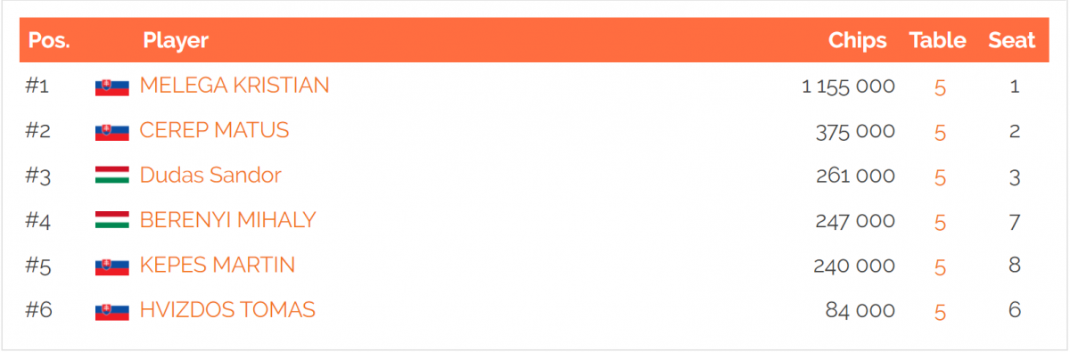 DAY 1C, ktorý ovládol Kristián Melega, v konečnom zúčtovaní prilákal na 42 hráčov. Extra život v podobe re-entry použilo 18 hráčov a počet entries sa tak zastavil na konečnom čísle 60. V luxusných priestoroch Banco Casino Košice sa však včerajšou nocou omieľalo hlavne pre všetkých pokrových hráčov čarovné slovíčko OVERLAY! V turnaji s garanciou nastavenou na 40.000€ je totižto vyzbieraných len 14.970 €!