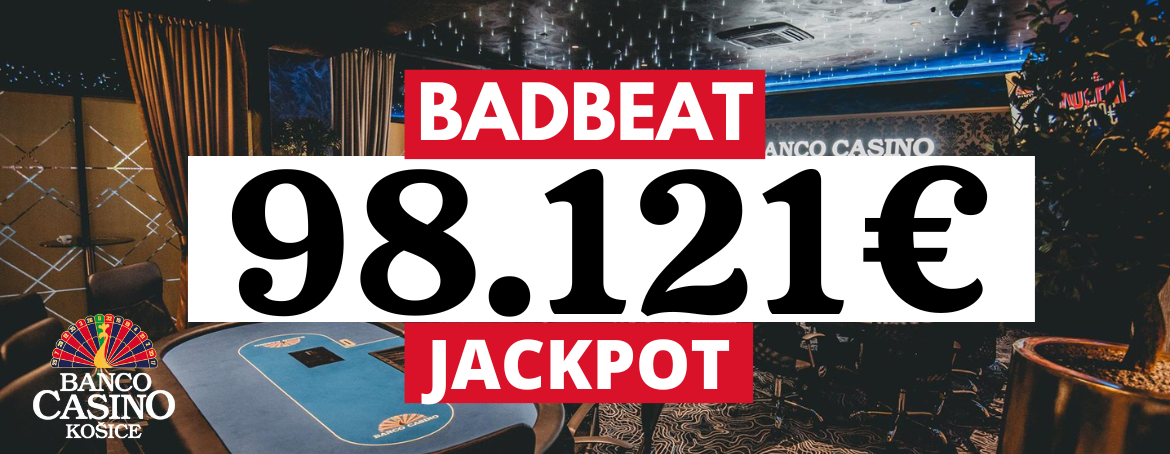 Bad Beat Jackpot v Banco Casino Košice je jednoznačne najväčším jackpotom na Slovensku. Na to, aby ste ho získali, potrebujete dávku šťastia, čo ku kartám samozrejme patrí. Aktuálna hodnota Bad Beat Jackpotu narástla už na masívnych 98,121€, čo ho robí najväčším BBJ na Slovensku!(1).png)