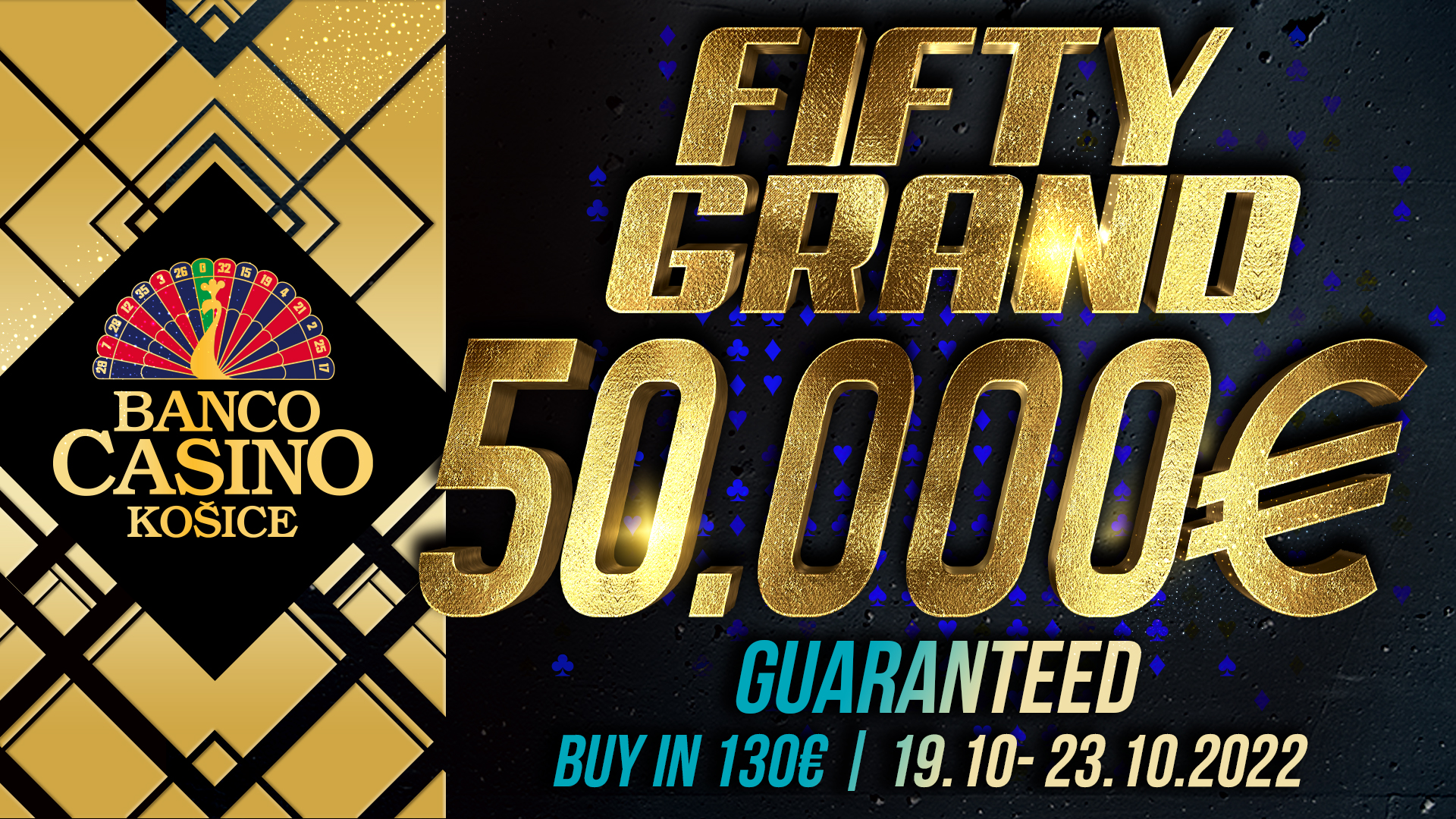 Pekelné tempo, v ktorom Banco Casino Košice pokračuje ďalej,čo je skvelou správou pre všetkých pokrových nadšencov.Najväčším turnajom tohto mesiaca bude obľúbený Fifty Grand, ktorý sa odohrá v dátume od 19 do 23. októbra. Počas tohto týždňa na všetkých hráčov čaká šesť rôznych šancí na postup do finálového dňa, kde každý hráč naskočí s istotou ITM. Buy-in do turnaja činí 130€, za ktoré vás na kase bude čakať 50,000 starting stack a polhodinové levely (15/10 v zrýchlených flightoch).