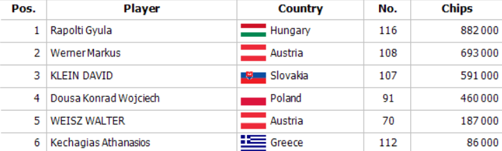 Stred týždňa znamenal pre pokrových nadšencov druhú možnosť zapojenia sa do Summer Cupu a boja o stotisíc eur. Sto eurové vstupné sa premenilo na 50.000 žetónov a všetci mali jasnú úlohu – postúpiť medzi TOP 10% zo zúčastnených a zabaliť čo najväčšiu postupovú obálku do finálového dňa, ktorý sa uskutoční v nedeľu. Tú najväčšiu zabalil maďarský hráč Gyula Rapolti a spoločne s ním postúpilo 6 možných šampiónov Summer Cupu.