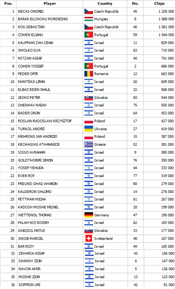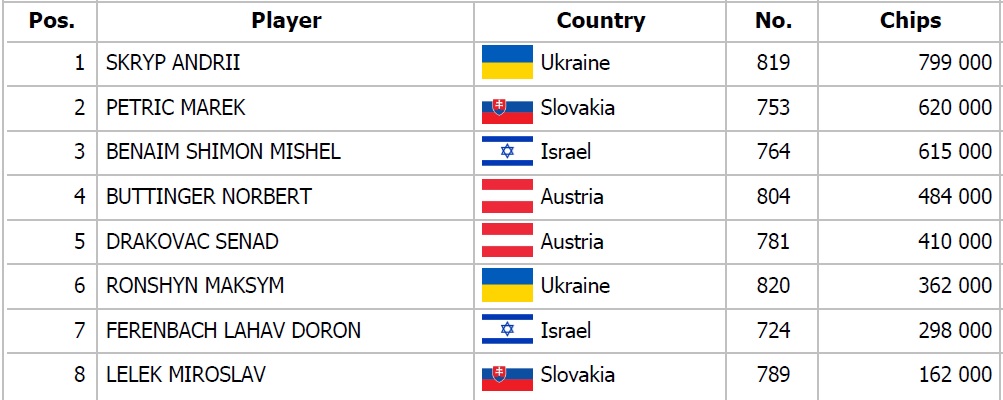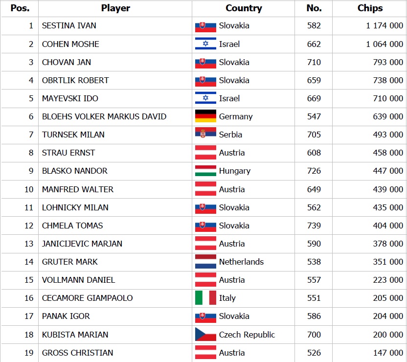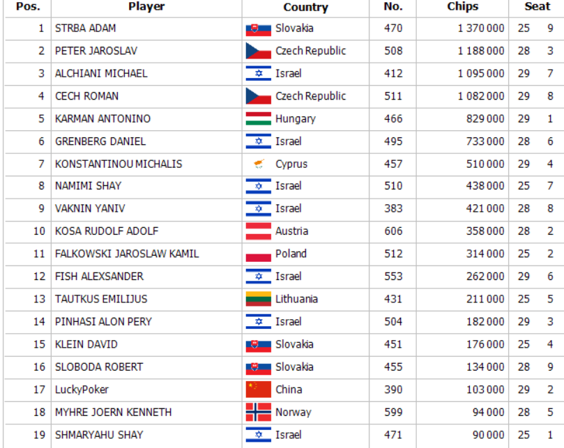 Taktiež je otvorená registrácia ešte tri levely v SPO Highroller evente, ktorý garantoval 20.000€, no už teraz je zaregistrovaných 80 vstupov. Garancia bola pokorená už v druhom leveli a teda účastníci si zahrajú o viac ako 40.000€. Štart finálového dňa je naplánovaný na 16:00 hodinu a pri štartovnom stacku 200.000 žetónov si máte možnosť kúpiť až 25 big blindový stack. Včera si najlepšie počínal Ondrej Nečas z Česka, ktorý dnes nastúpi ako chipleader. Kto ovládne Highroller?