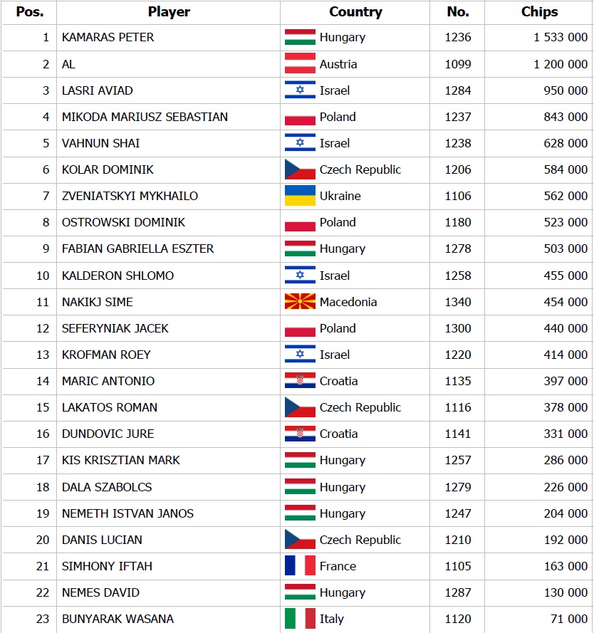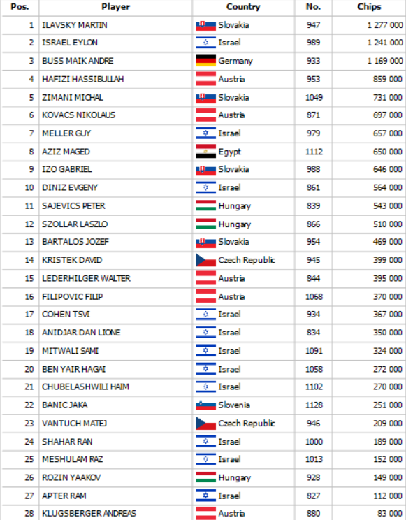 Main Event SPO podľa prognóz zaregistroval najviac vstupov, keďže sobota v Banco Casino býva vždy silným dňom počas veľkých podujatí. Včerajší deň zaznamenal dovedna 597 vstupov a teda ďalších 60 si zabezpečilo účasť v dnešnom Day 2. Ak chcete postúpiť do Day 2 medzi elitu turnaja, poslednými možnosťami je dnešné Hyper Turbo so štartom od 10:00 a otvorenou registráciou do 12:40 a hneď potom už len Flip & Go posunú šťastlivcov do druhého dňa, v ktorom sa bude hrať o viac ako 300.000 eur.