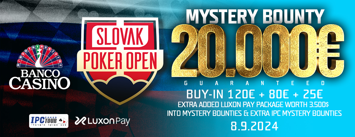 Dnes okrem Day 2 sa bude hrať aj SPO Luxon Pay Mystery Bounty, ktoré garantuje 20.000 eur a ešte prinesie aj ŠPECIÁLNE BONUSY v podaní extra bounty odmien od Banco Casino, IPC a Luxon Pay venoval do prizepoolu 3.500 eurový balíček.