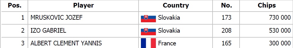 Dnes štartuje aj Battle Royale a teda prestížny knockout turnaj so vstupným 750€, ktoré je rozdelené na 370€ putujúcich do rastúceho prizepoolu a 300€ ako bounty odmena za elimináciu súpera. Štartovný stack 50.000 žetónov, 25 minútové blindy a dnešný úvodný deň sa odohrá 20 levelov, po ktorých postúpia všetci do Finálového dňa.