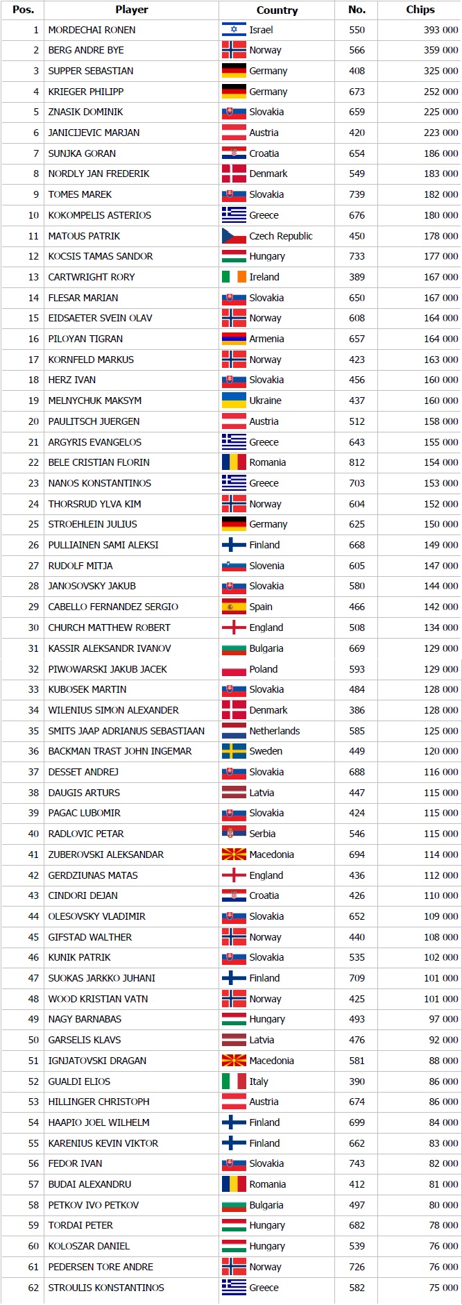 TheFestival Main Event má za sebou všetky úvodné dni, ktoré zaregistrovali 852 vstupov, čo na pokorenie garancie nestačí, keďže kasíno garantuje polmilióna eur. V tomto momente Banco Casino dotuje garanciu 75.000 eurami, ale ešte stále je OTVORENÁ REGISTRÁCIA a to prvé dva levely, čiže do 14:00 hodiny. Štartovný stack 30.000 žetónov znamená pri blindoch 1.000 / 2.000 až 15 blindový stack, takže určite nájdeme hráčov bažiacich po výhre vďaka neskorej registrácii.