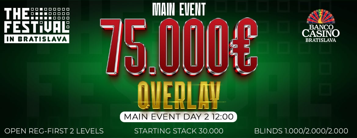 TheFestival Main Event 500.000€ GTD: OVERLAY 75.000€ a registrácia otvorená prvé dva levely Day 2!