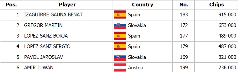 Po troch úvodných dňoch Main Event Spanish Poker Festival má zaregistrovaných 237 vstupov, z čoho sme spoznali 24 postupujúcich a tí majú istotu „seatu“ v Day 2 a to znamená aj istota finančnej odmeny. Do garantovanej čiastky 150.000€ ešte stále čo-to chýba a dnes budú na programe dve možnosti, v ktorých spoznáme ďalších adeptov na zisk titulu, trofeje a odmeny pre šampióna ME SPF!