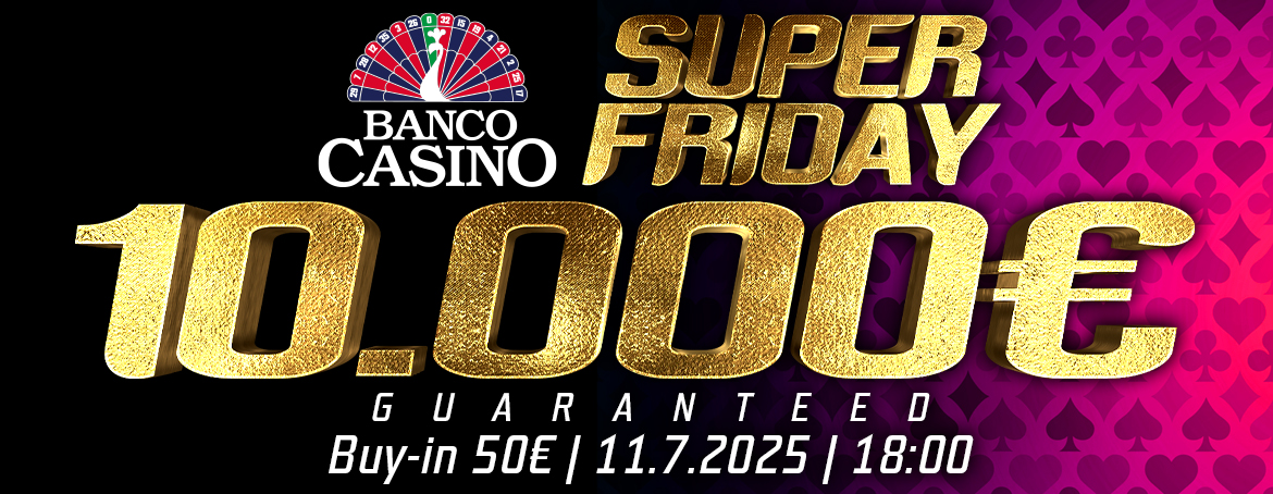 Banco Bratislava prináša pokrovým hráčom nepretržitú akciu a už tento víkend má nachystané dva pokrové turnaje – tradičný Super Friday 10.000€ GTD, kde iba za 50 eur si môžete zahrať kvalitný poker. Sobota prinesie NOVINKU NLH Mystery Bounty, kde je garancia nastavená na 25.000 eur a to len za 125€ vstupné zložené z 70€ + 55€.