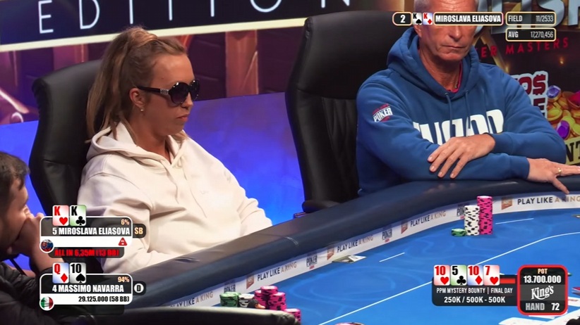 Miroslava Eliášová predviedla počas celého turnaja stabilnú a disciplinovanú hru, vďaka ktorej sa jej podarilo dostať až na 11. miesto, len krôčik od finálového stola. V poslednej hande nešťastne prehrala all-in preflop KK vs. QT, keď sa hneď na flope otočili dve desiatky. Za svoj výkon si odniesla €1,450, no keďže išlo o mystery bounty event, nie je vylúčené, že získala aj ďalšiu odmenu vo forme bounty.