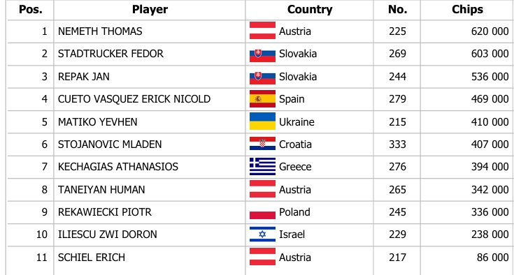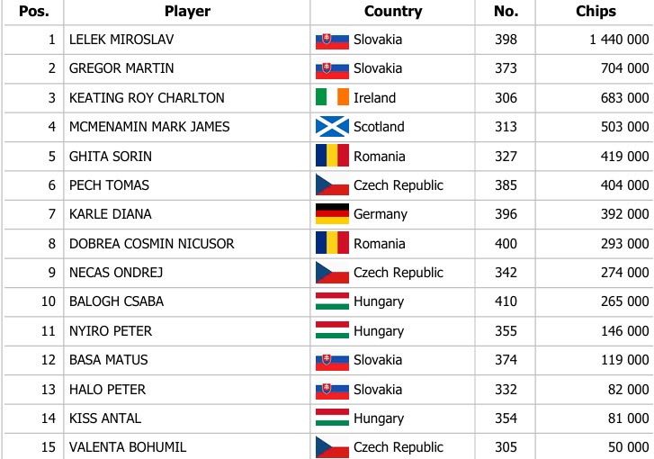 Banco Bratislava hostilo v sobotu tri možnosti na postup v Main Evente Mystery Bounty Series, ktoré pred včerajším dňom hlásilo overlay až 70.000€. Včerajšie dianie prinieslo 233 registrácií a teda stále je doplatok do garantovaného prizepoolu 100.000€ atraktívnym pre pokrových hráčov. Včera sme videli postup 29 členného hráčskeho poľa, ktoré si zapečatilo postupové stacky do dnešného finále.