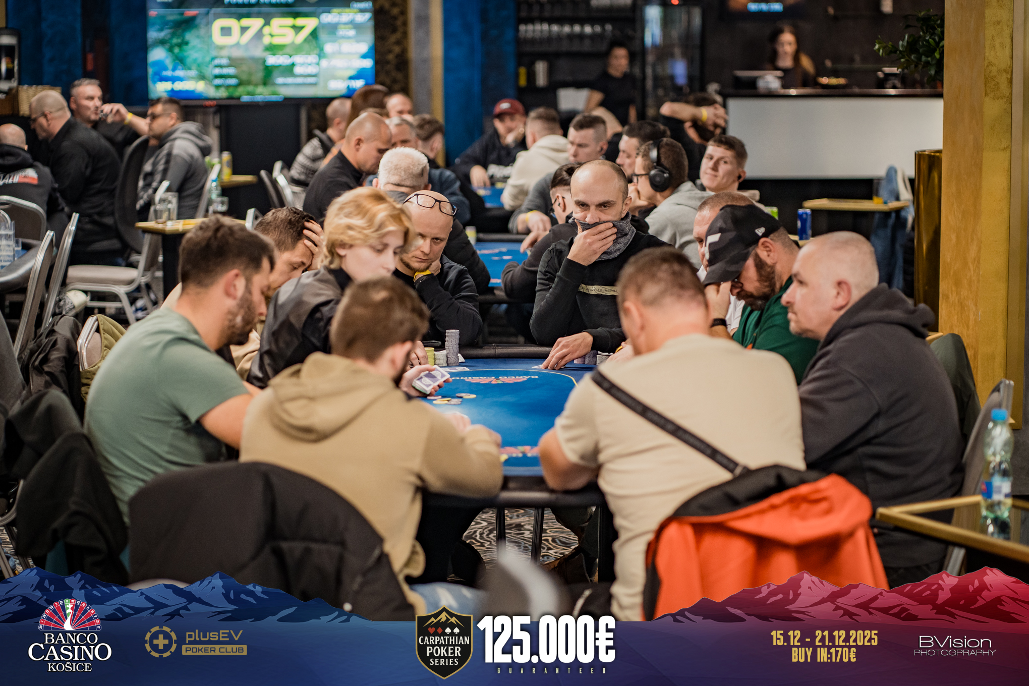 Pokrový sviatok Carpathian Poker Series s garanciou 125.000€ v Banco Casino Košice včera pokračoval úvodnou časťou DAY 1/C. Najväčšia udalosť roka košického kasína prináša počas tohto týždňa lákavé cash games a hlavný turnaj s garanciou 125.000€.