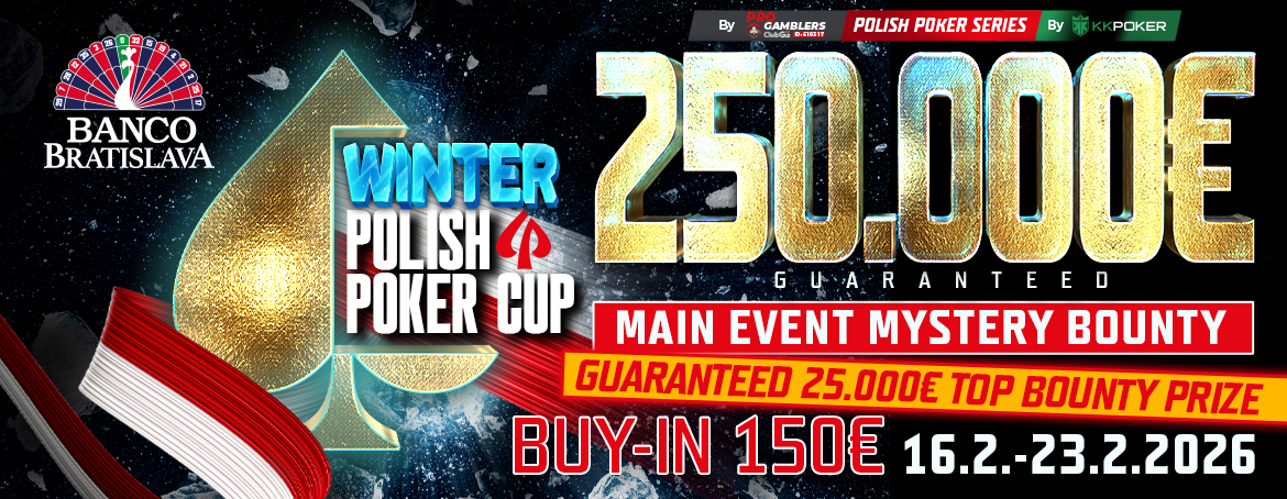 Banco Bratislava si na rok 2026 nachystalo veľké turnaje, ktoré sa pokúsia zlomiť doterajšie rekordy. Už vo februári sa uskutoční Winter Polish Poker Cup, ktorého Main Event bude garantovať 250.000€ a to len za 150€ vstupné a prvýkrát sa odohrá vo obľúbenom formáte Mystery Bounty s tým, že najväčšia „mystery“ odmena bude mať garanciu 25.000€!