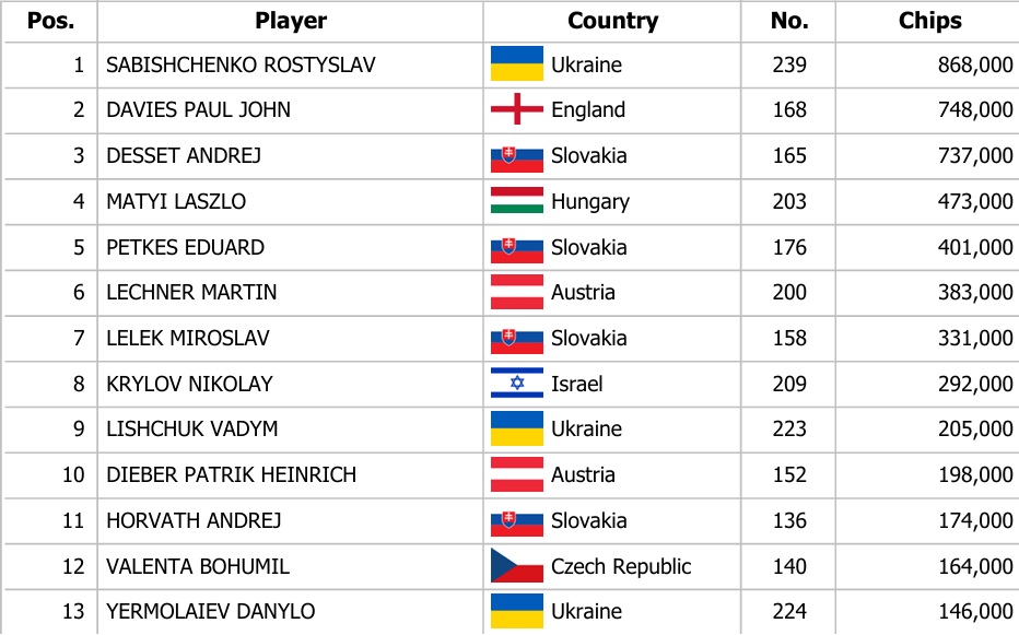 Banco Casino Masters #43 – 250.000€ GTD: Ďalších 13 hráčov smeruje do Day 2!