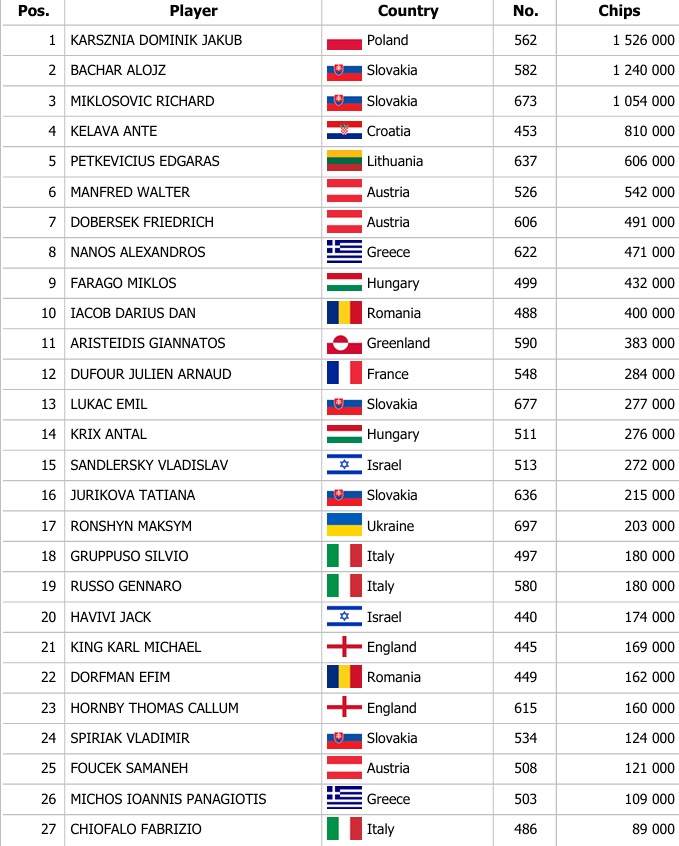 Nabité piatkové dianie v Banco Bratislava malo na programe dve možnosti na postup, v ktorých sa dokopy zaregistrovalo 361 účastníkov a z nich sa vyprofilovalo 36 členné hráčske pole. Ani včera nemohla najlepších postupujúcich obísť odmena v podaní chipleaderských bonusov, takže už pred oficiálnym umiestnením si 6-tica hráčov odniesla 5.200€.