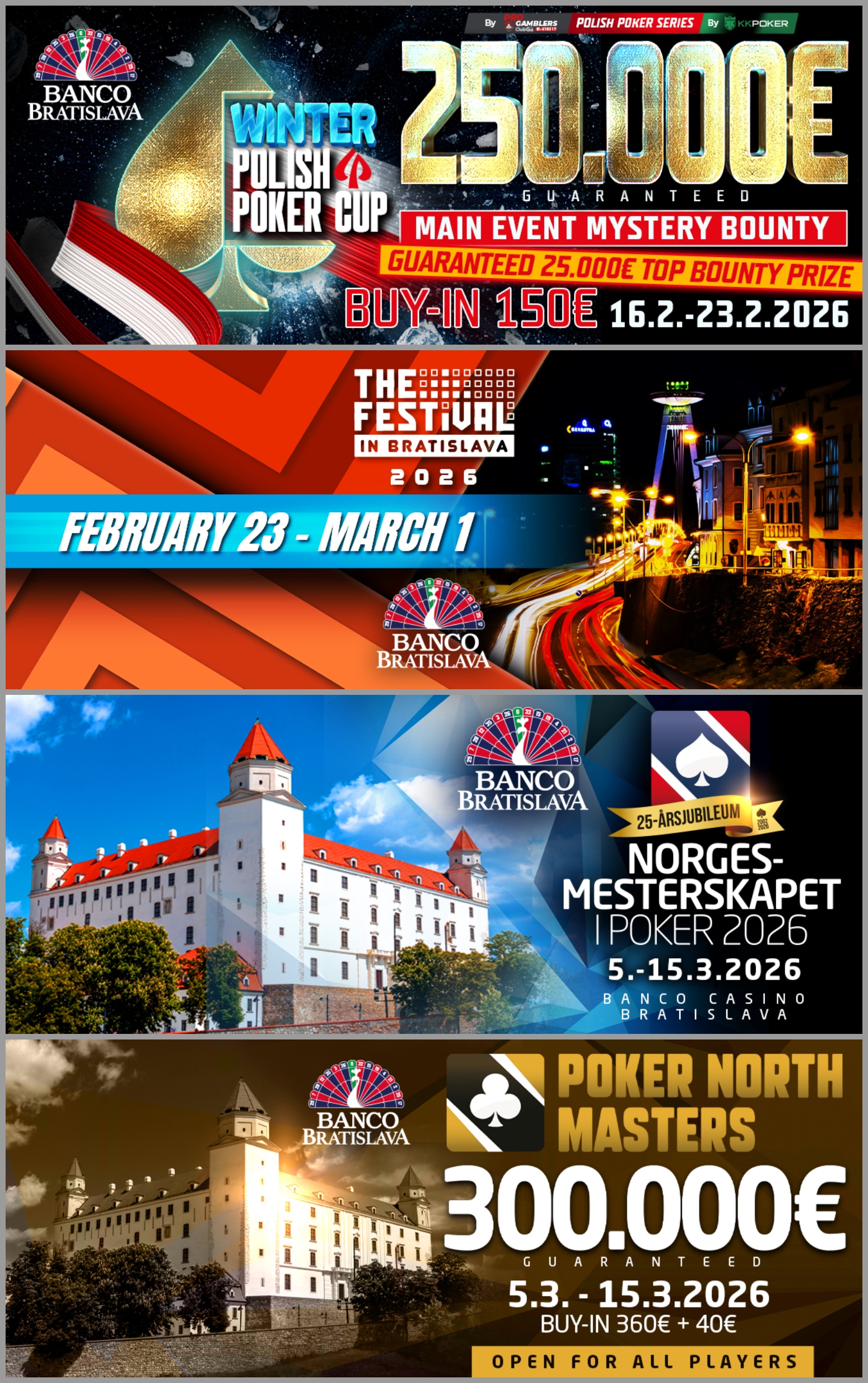 Hneď po ikonickom Banco Casino Masters sa uskutoční v dňoch od 20.1. do 26.1.2026 novinka, ktorú prináša Banco Bratislava v spolupráci s najstaršou Izraelskou pokrovou organizáciou – ISRAELI FEDERATION CUP, ktorý bude garantovať viac ako 300.000€!