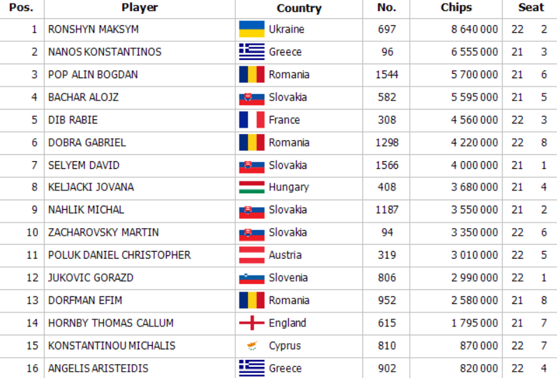 Druhý hrací deň odštartovalo 155 členné hráčske pole a každý prítomní mal garantovanú čiastku 425€, no každý upriamoval pozornosť na 16 postupových miesteniek zaručujúcich dnešné finále a boj o odmenu 32.653 eur.