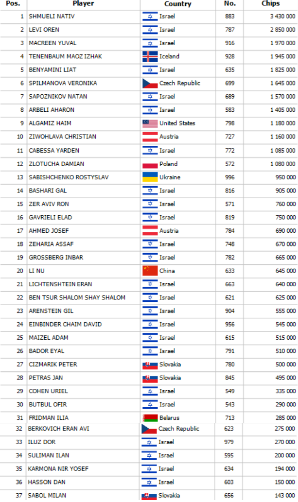Israeli Federation Cup Main Event 250.000€ GTD – 1E: