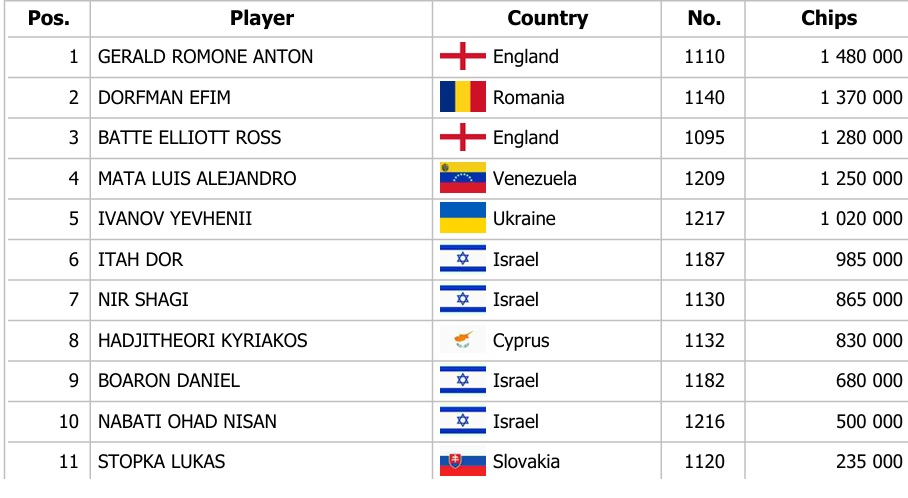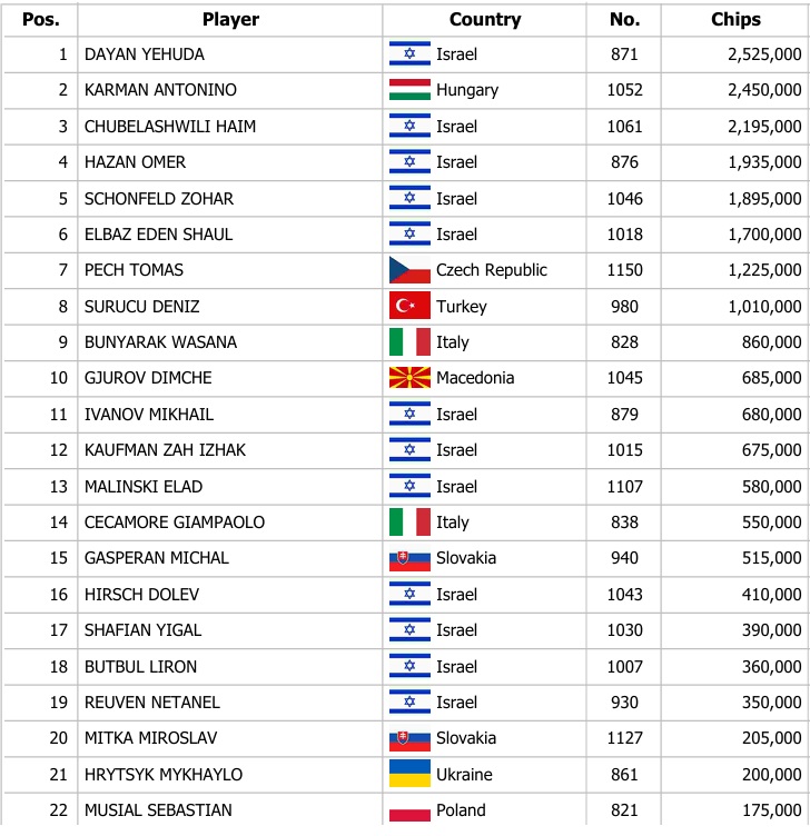 Israeli Federation Cup Main Event 250.000€ GTD – 1F: